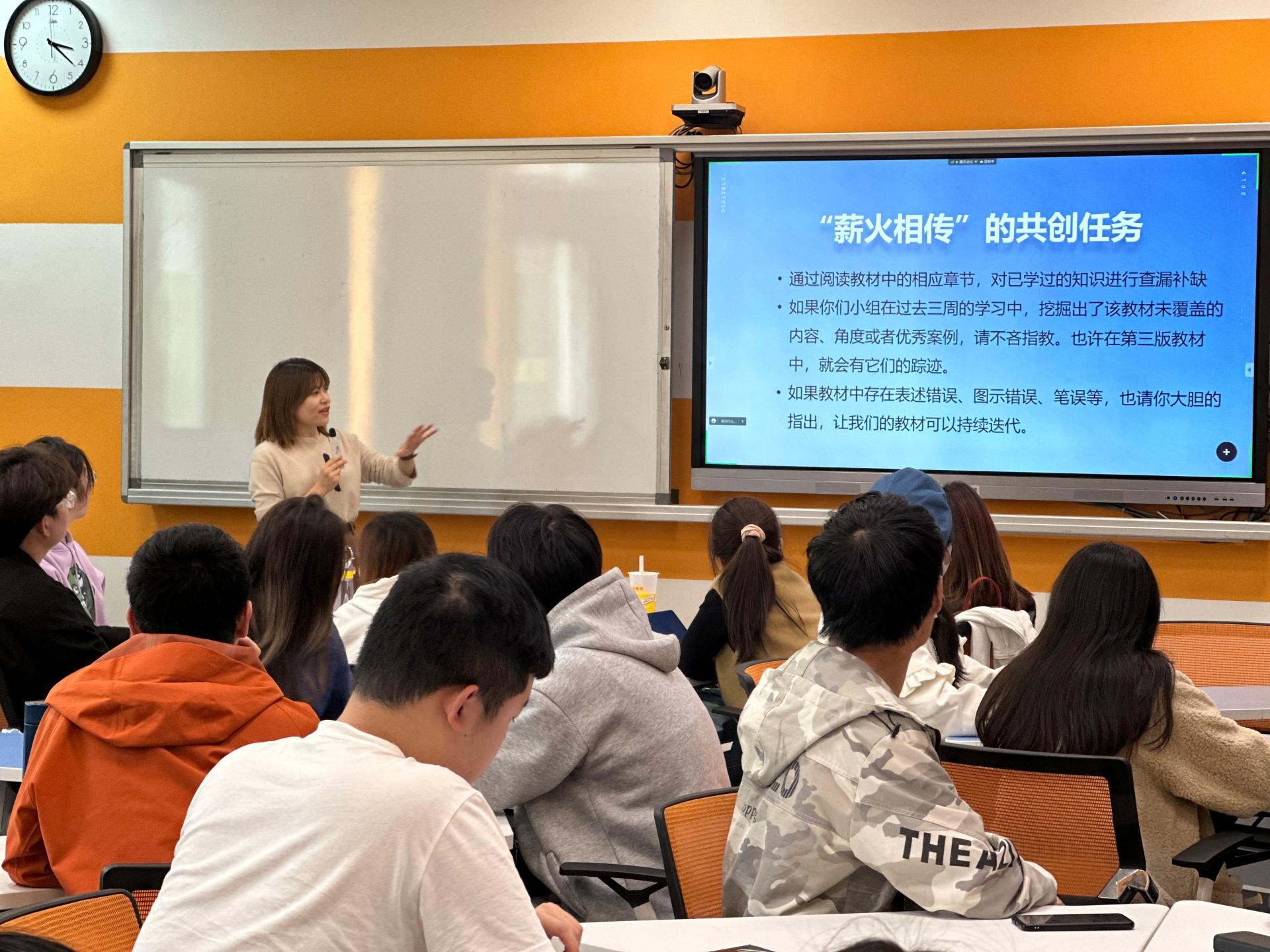 课上,周老师首先以在描述数据趋势时可能遇到的复杂情形为出发点,针对各类可视化图表在学生小组学习过程中存在的难点问题进行了详细解答,她认为,选择与使用各类图表的核心是了解并仔细研读数据。随后,她基于具体项目场景,布置了后半学期的共创任务及期末项目,并提供了详细的项目流程和学习脚手架。周老师的课堂通过项目式教学,激发了学生的学习兴趣,提高了学生团队合作、项目管理、解决问题等综合能力。