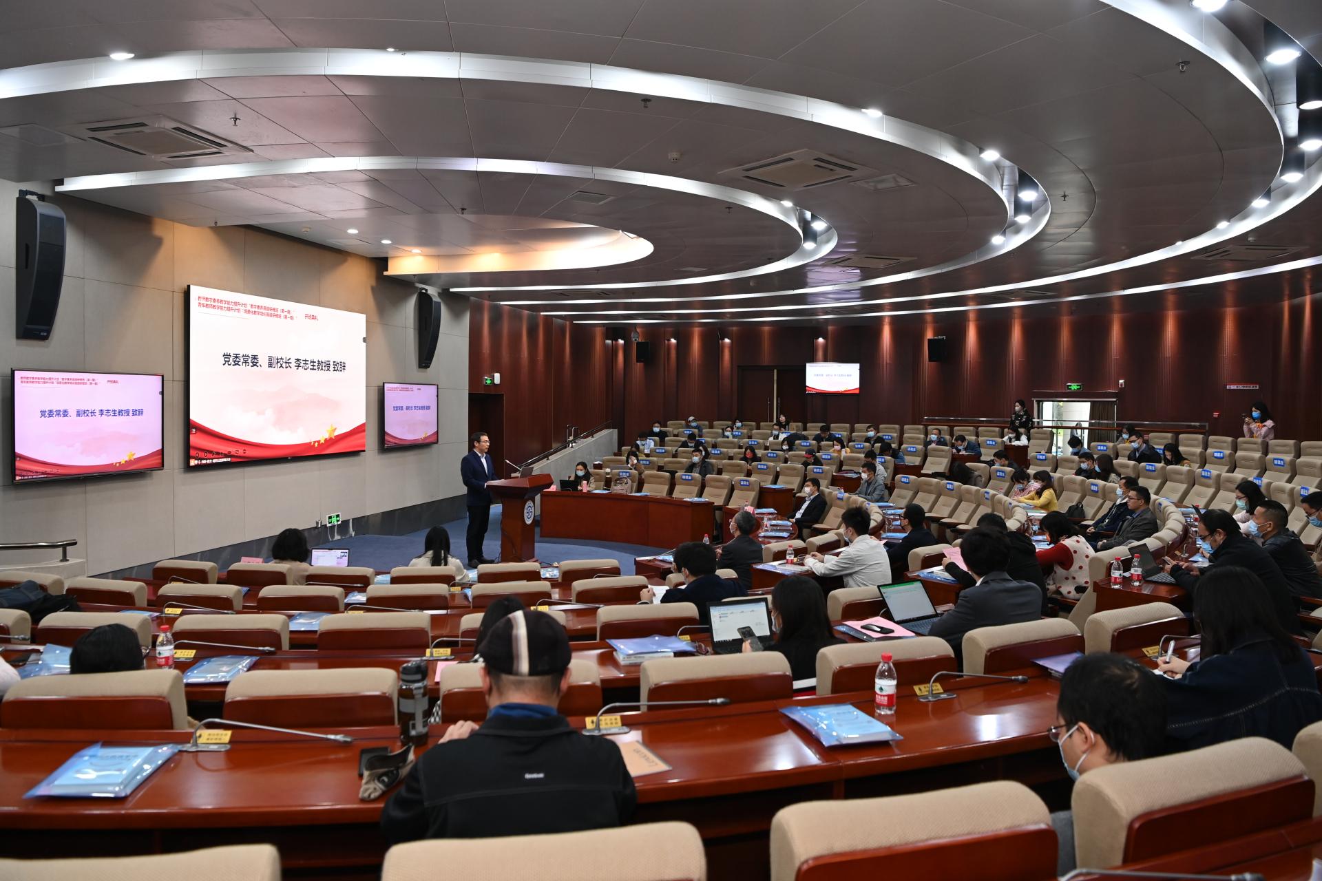 10月12日上午,我校教师数字素养教学能力提升计划“数字素养高级研修班(第一期)”与青年教师教学能力提升计划“场景化教学高级研修班(第一期)”开班典礼在弘远楼101举办。学校党委常委、副校长李志生,北京师范大学教育学部董艳教授、学校教务处负责人和各学院(研究院)教学副院长、系主任、青年教师等共计100余人参会。教师教学发展中心主任王远均主持会议。