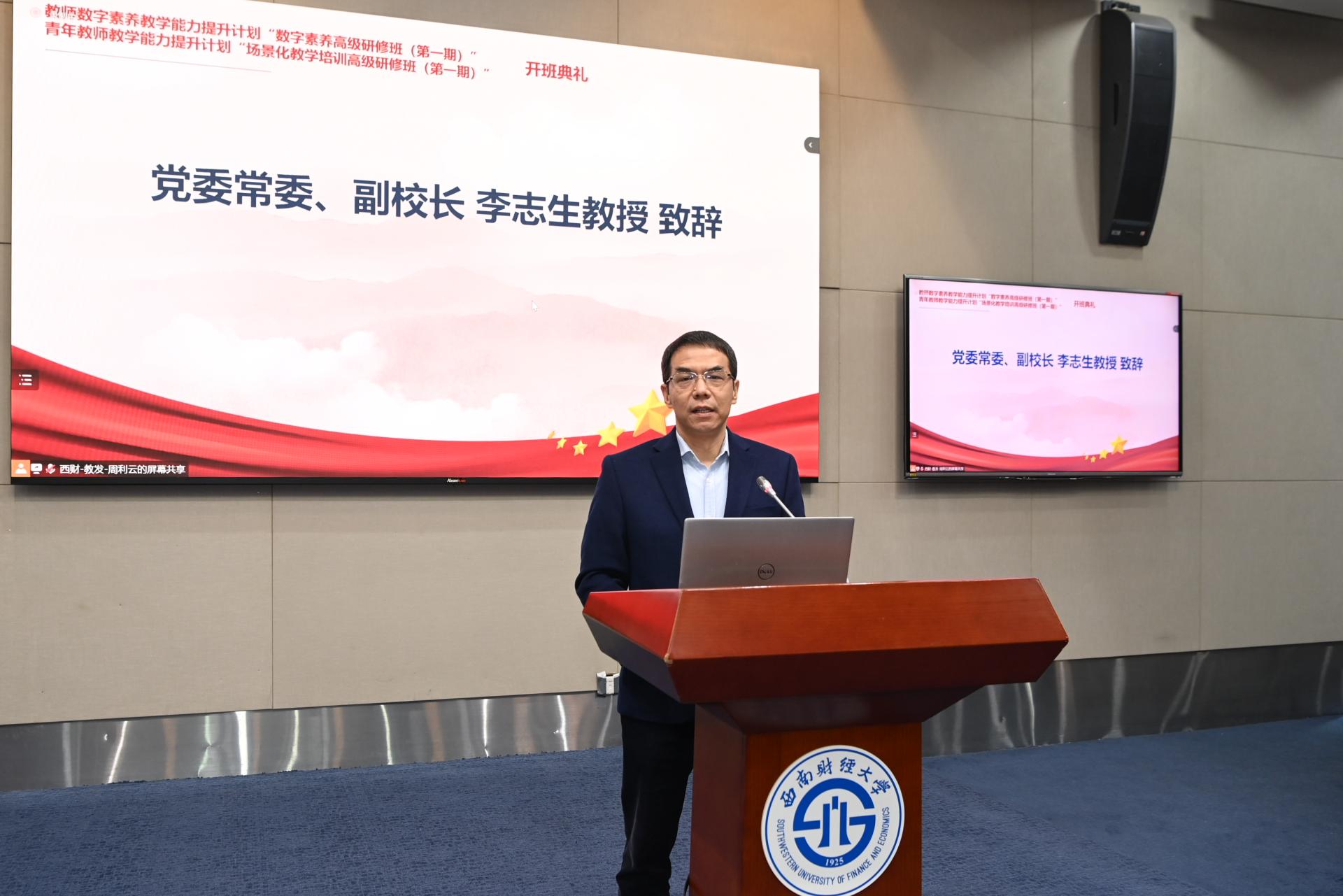李志生指出,为进一步贯彻新财经战略、推动教育数字化转型等目标,学校精心筹备了此次研修班,“数字素养高级研修班”主要围绕数字经济和新财经教育、智慧教学、项目管理开展,“场景化教学高级研修班”综合利用教学观摩、专题讲座、教学案例、成果展示等方式,系统开展“看、听、练、研”培训。李志生希望此次研修班能帮助参培教师深化思想认识、精进业务本领,并预祝首期高级研修班取得圆满成功。