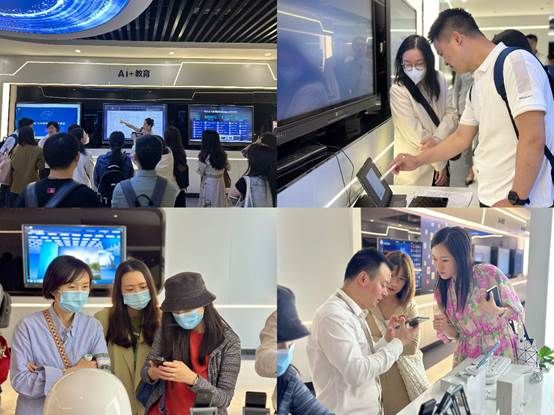 活动前半场,我校教师在讲解员刘雪寒的带领下,参观了科大讯飞人工智能体验馆,通过对讯飞的开放平台、核心技术、星火大模型、智能黑板等技术工具的演示和体验,进一步了解了AI在办公、教育、医疗、政法等应用场景的具体功能和优势。