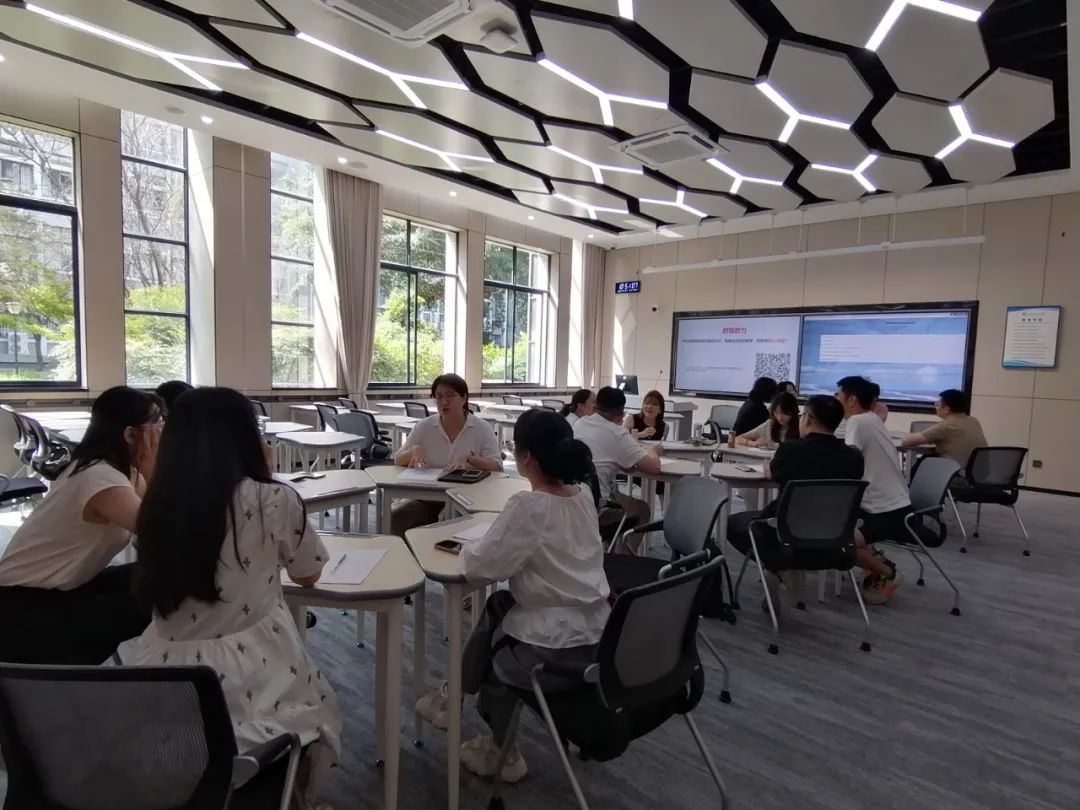 在研讨会上,教务处副处长廖春华首先介绍了多屏智慧教室建设的背景、智慧教室资源概况以及智慧课堂建设相关教学改革政策,鼓励老师们积极利用先进智联交互学习环境创新课堂教学设计,不断提升课堂教学质量。随后,四川大学旅游学院鲁力副教授、西南财经大学统计学院周凡吟教授分别作“数字化背景下的研讨式教学改革”主题分享。鲁力老师从“以学为中心”教学理念出发,详细讲解了多个主动学习活动的操作方案,分享了他用AIGC赋能课堂互动、学习评价的心得体会。周凡吟老师着重对比分析了研讨式教学与传统教学的差异,她以《数据可视化》课程为例,针对“研讨主题如何设计”、怎么组织研讨的开展”、“怎么保障研讨的效果”等研讨式教学中的常见问题分享了一系列教学策略。最后,参会教师们通过递“纸条”、投票、小组讨论、头脑风暴等方式展开一系列研讨活动,针对研讨式、场景化项目式教学面临的3个主要挑战形成了17种解决方案,针对C区多屏智慧教室环境设计出13种创意互动活动。